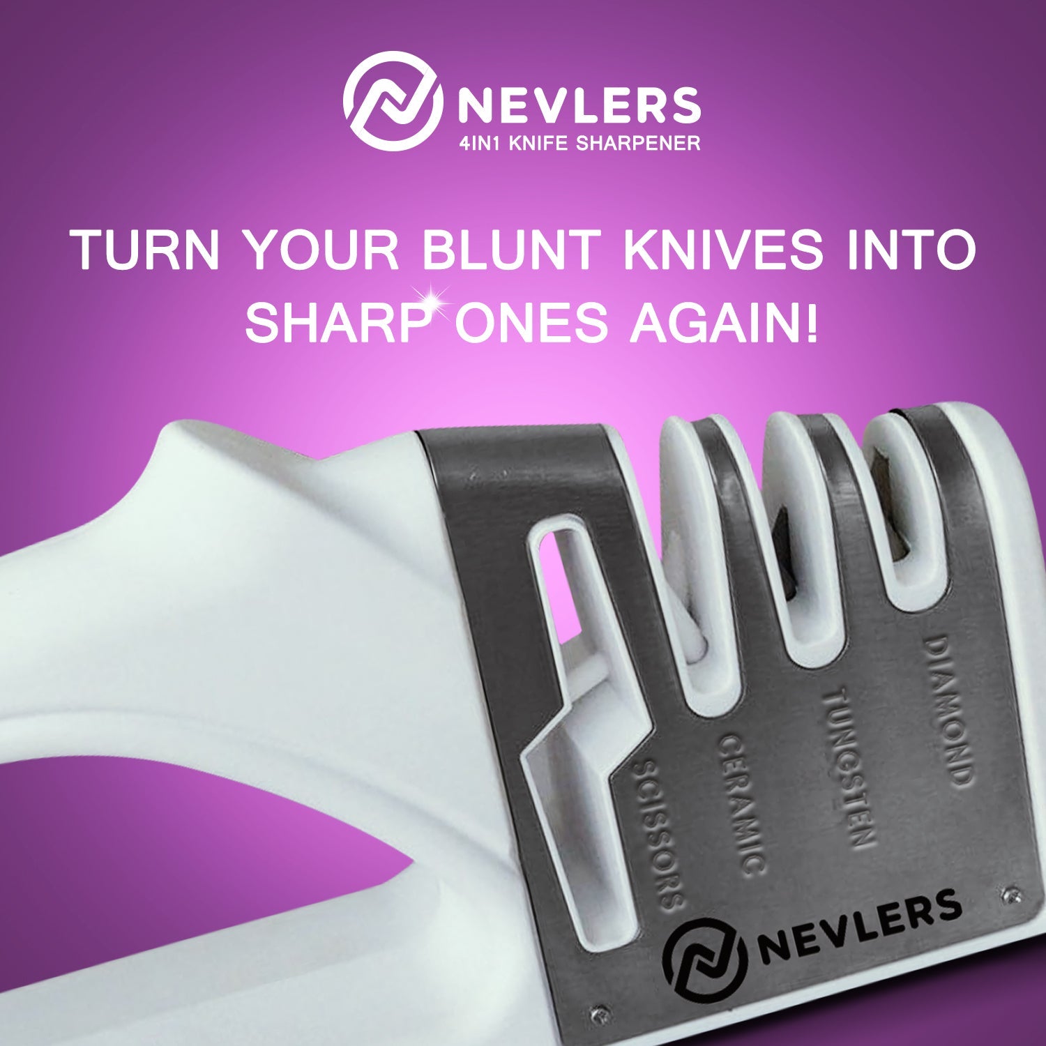 Our 4 in 1 Knife Sharpener has 3 slots to prep, repair, sharpen, and polish your dull knives. Plus, there’s a 4th bonus slot for scissors. Throw out your old sharpening stone and upgrade to our knife sharpener today!