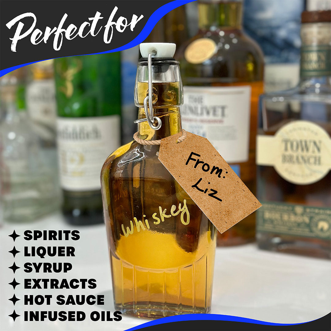 The Nevlers Swing Top Bottle is ideal for storing and serving alcohol, juices, infused oils/water, syrups, and other liquids. Our clear glass flasks are designed with a thick rubber gasket and steel wire clamp, to secure the seal and preserve the contents of your bottle.