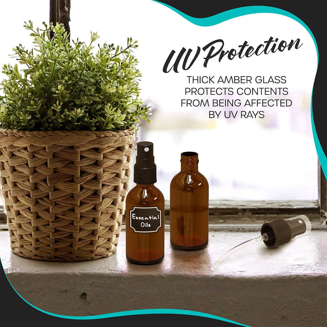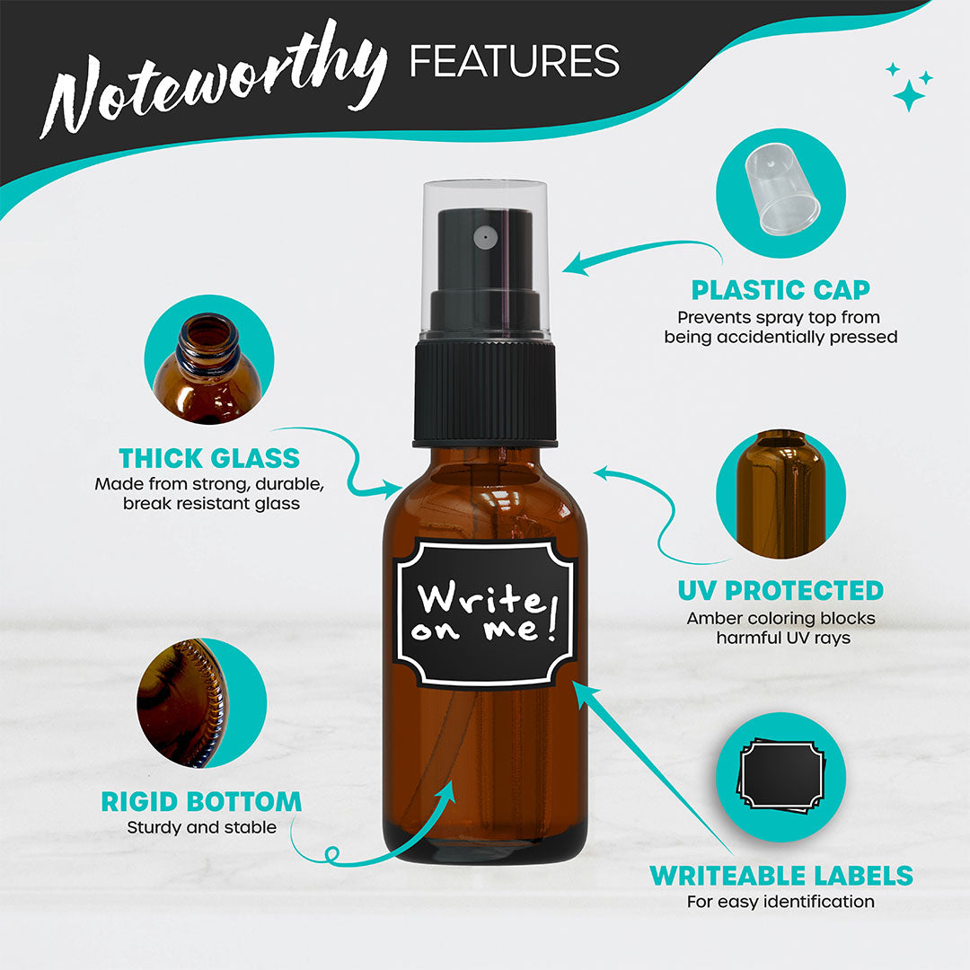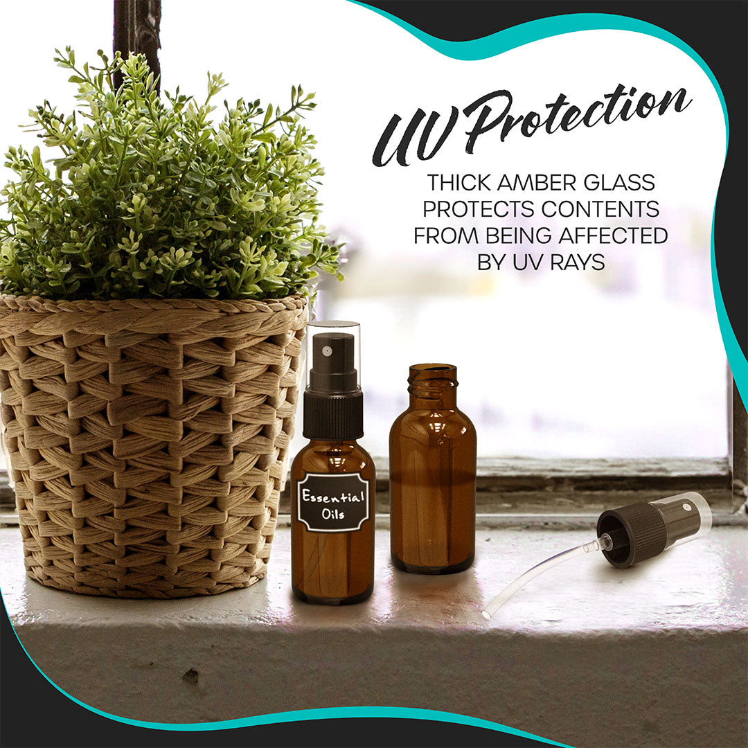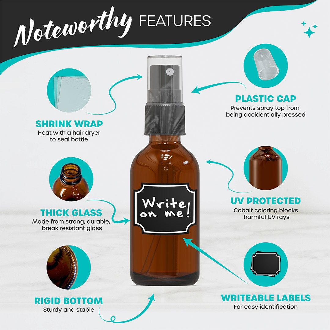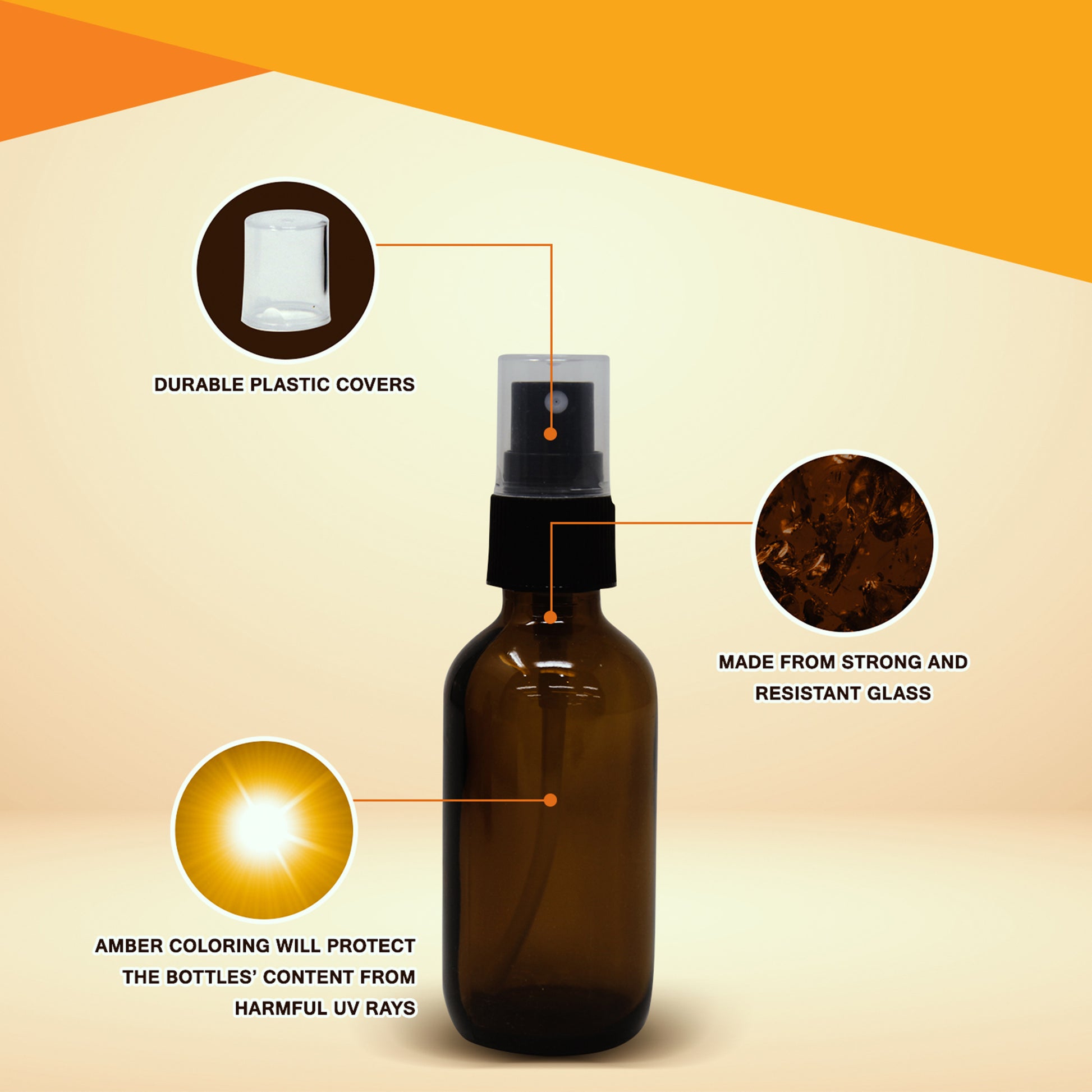 The Nevlers Amber Glass Toiletry Spray Bottles are ideal for storing oils, cosmetics or natural and homeopathic remedies of all kinds. These leakproof mist bottles were manufactured using high-quality amber glass, making them great for gifting or traveling, as well as ensuring your bottle contents are protected from harmful UV rays.