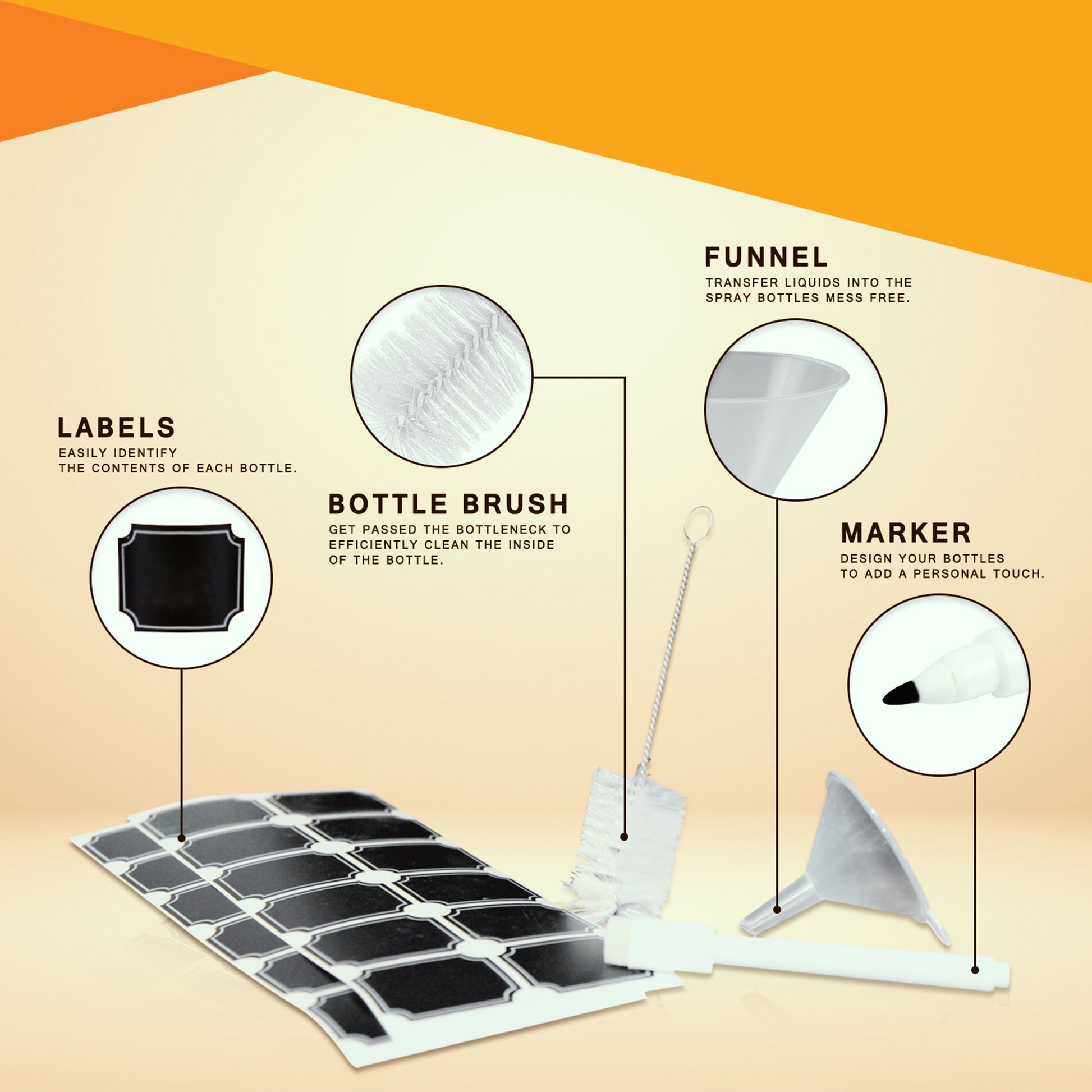 - Brush easily gets past the bottleneck of empty spray bottles to wipe out residue