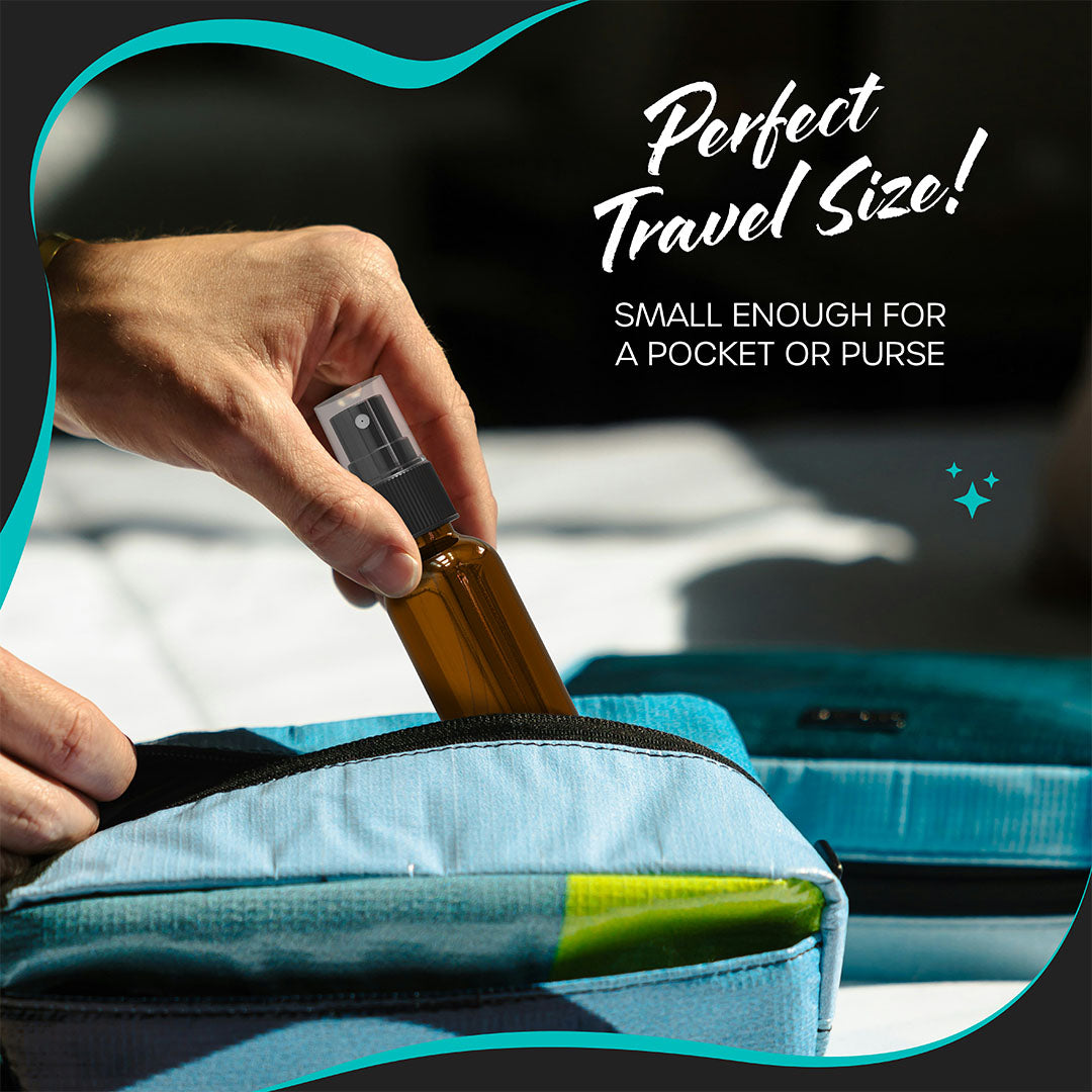 - Travel size spray bottle with leakproof spray tops and plastic caps to prevent spillage