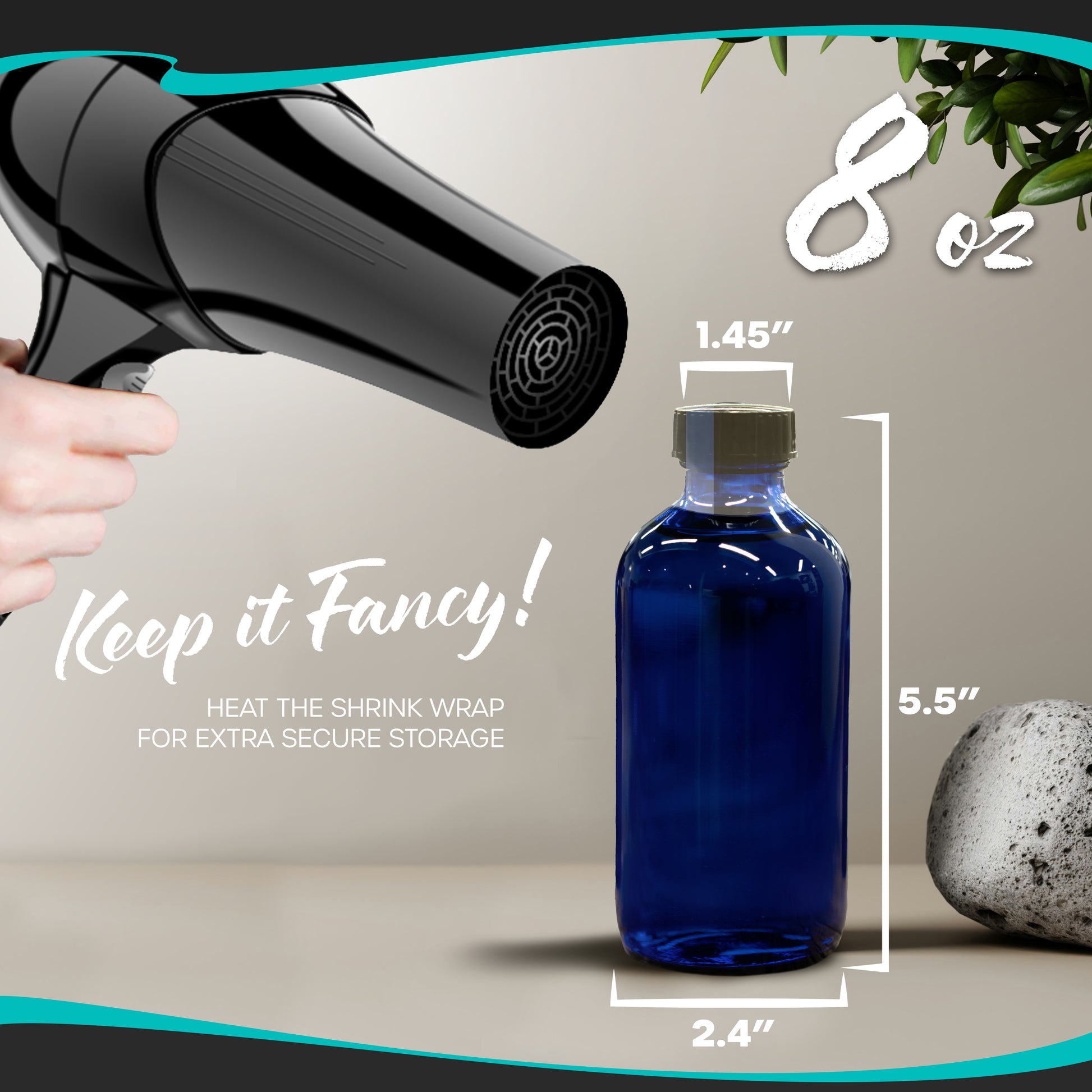 - 8 Oz. Cobalt Blue Glass Bottles.