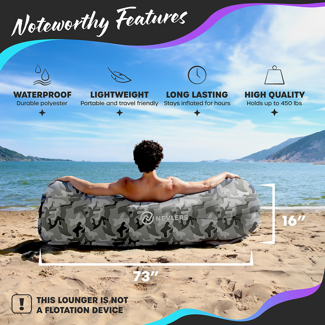 - Versatile use as an air couch, chaise lounge, beach chair & beyond.