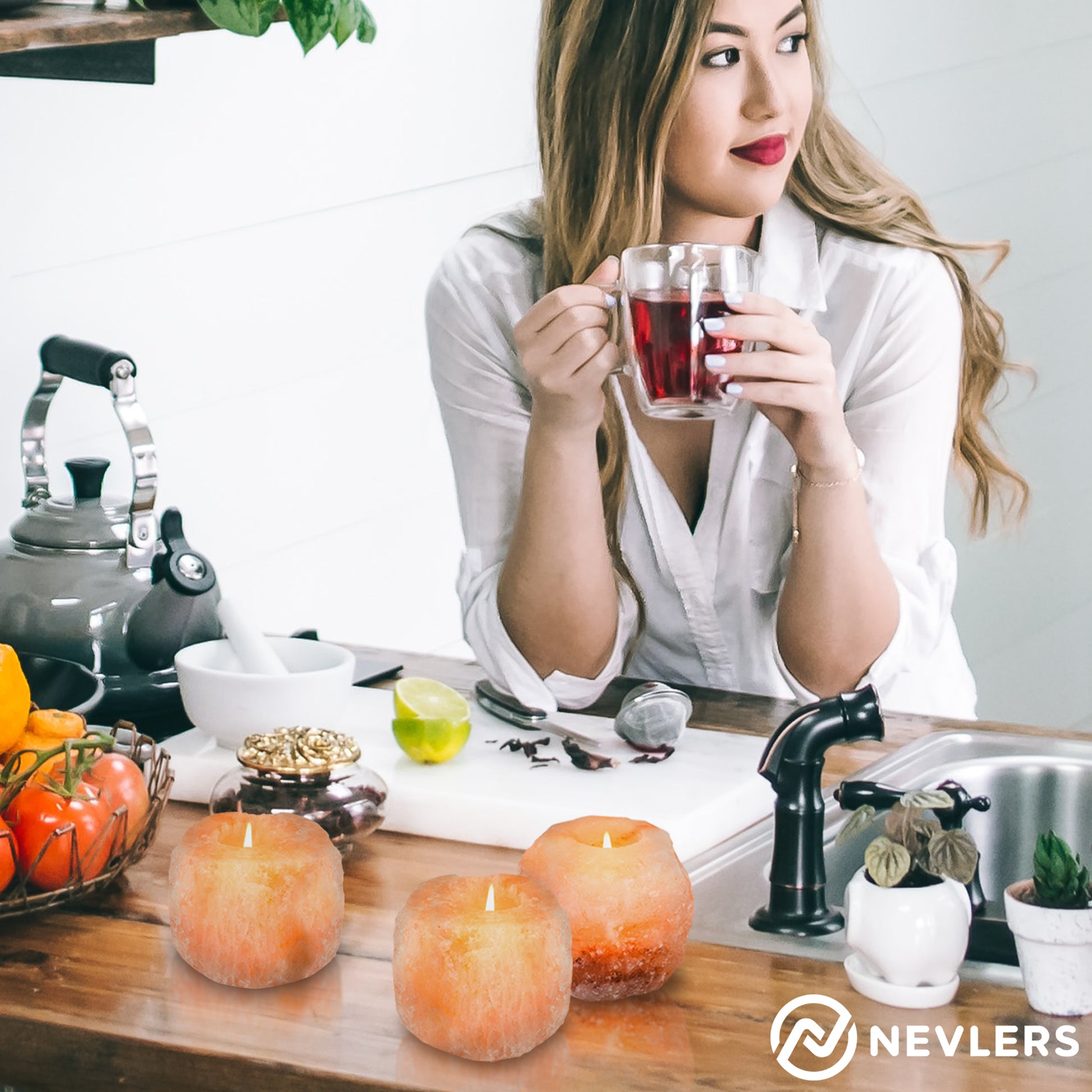 The Nevlers Himalayan Salt Tea Light Holder is a natural way to transform your space. Handcrafted from Himalayan salt, it offers a warm glow and provides various health benefits when lit.