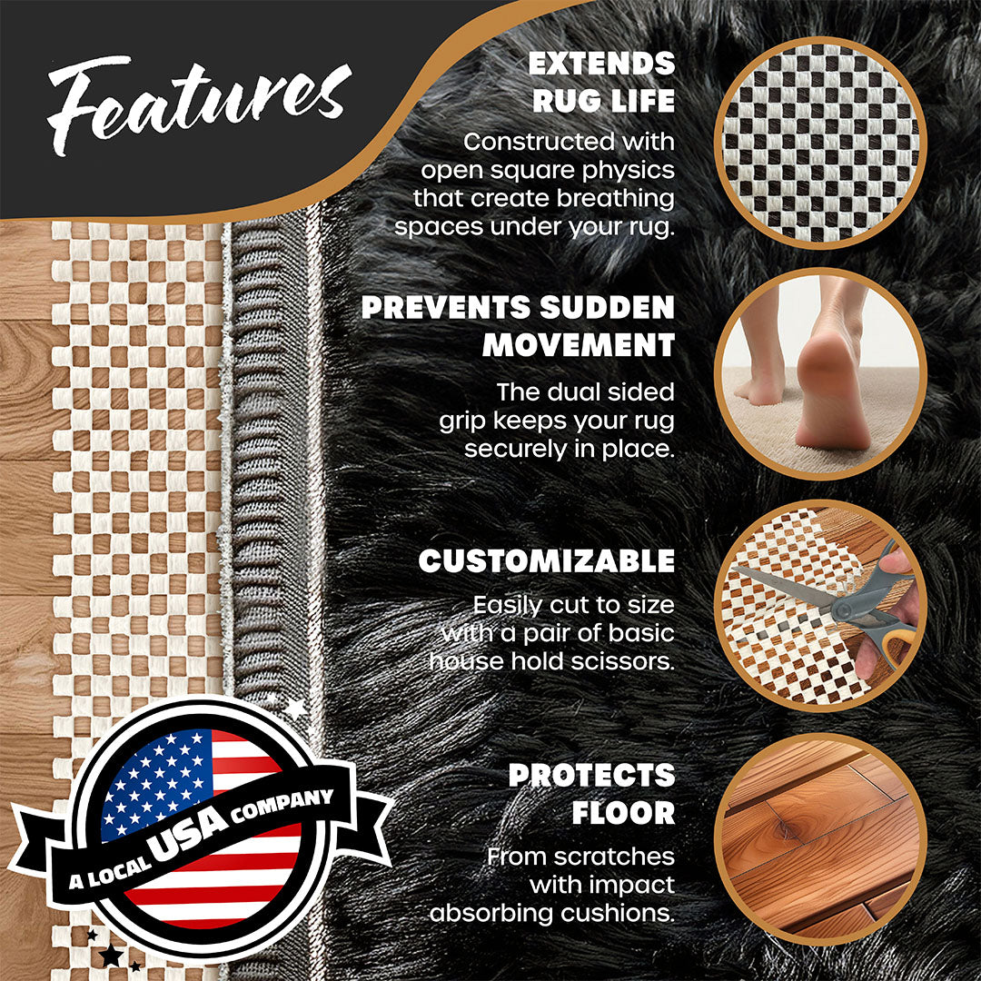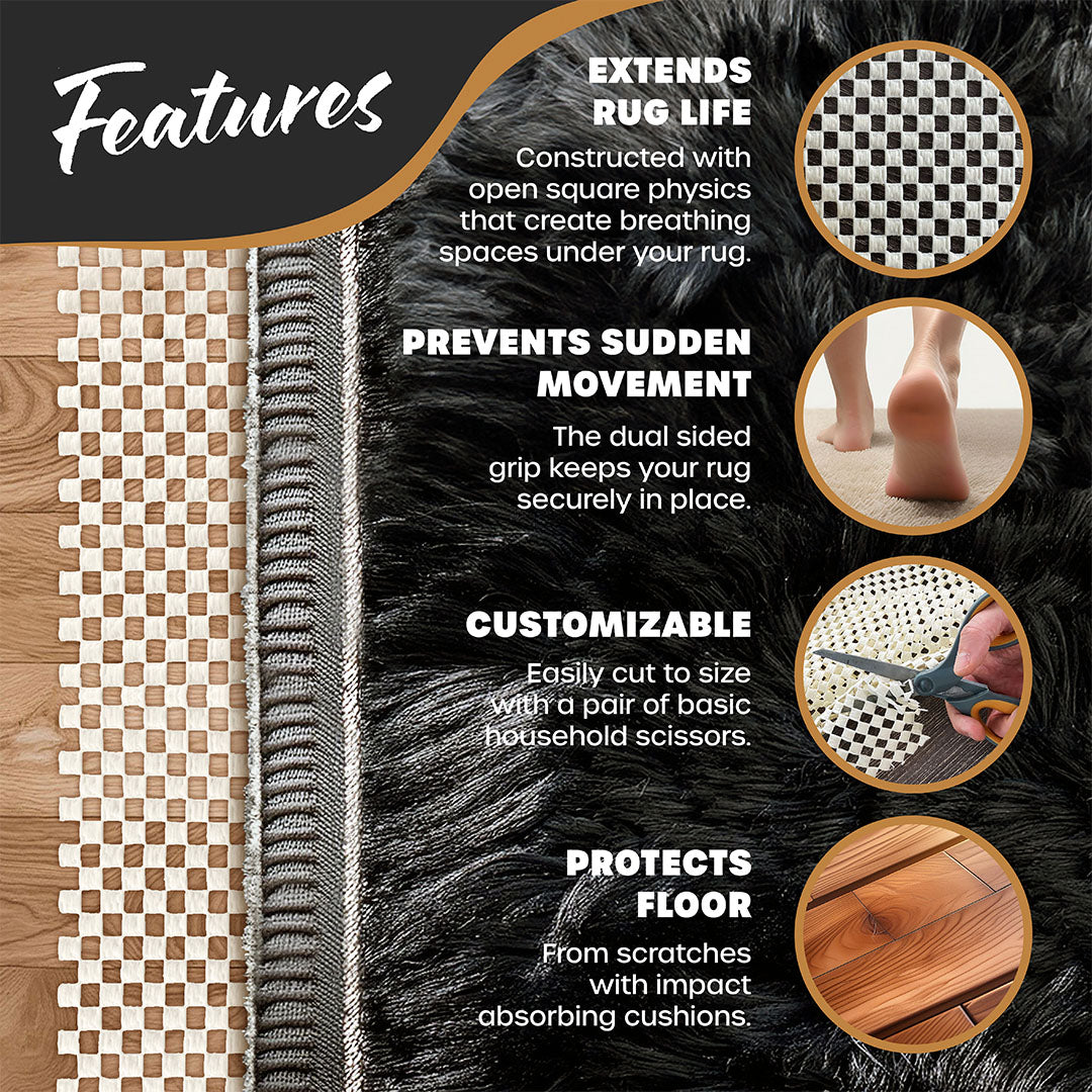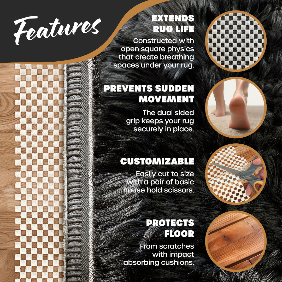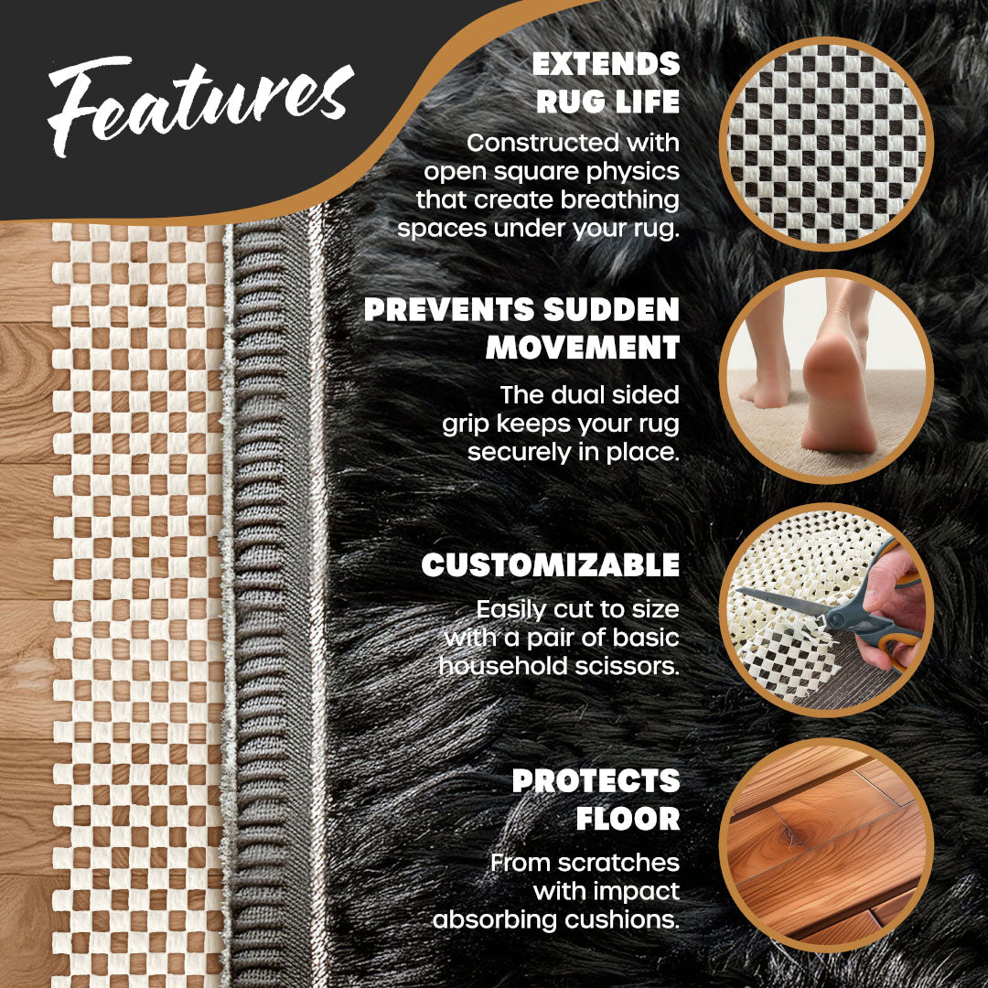 - Non-Slip: Keeps rugs in place.